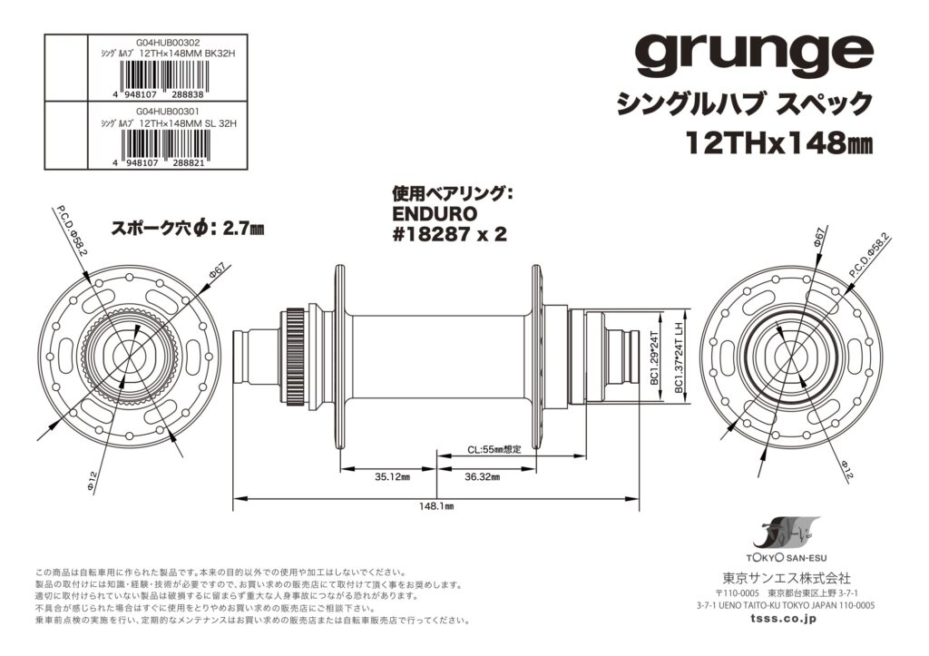 | G04HUB00301 | 4948107288821 | シングルハブ 12TH×148MM SL 32H | ¥18,700(税抜¥17,000) |