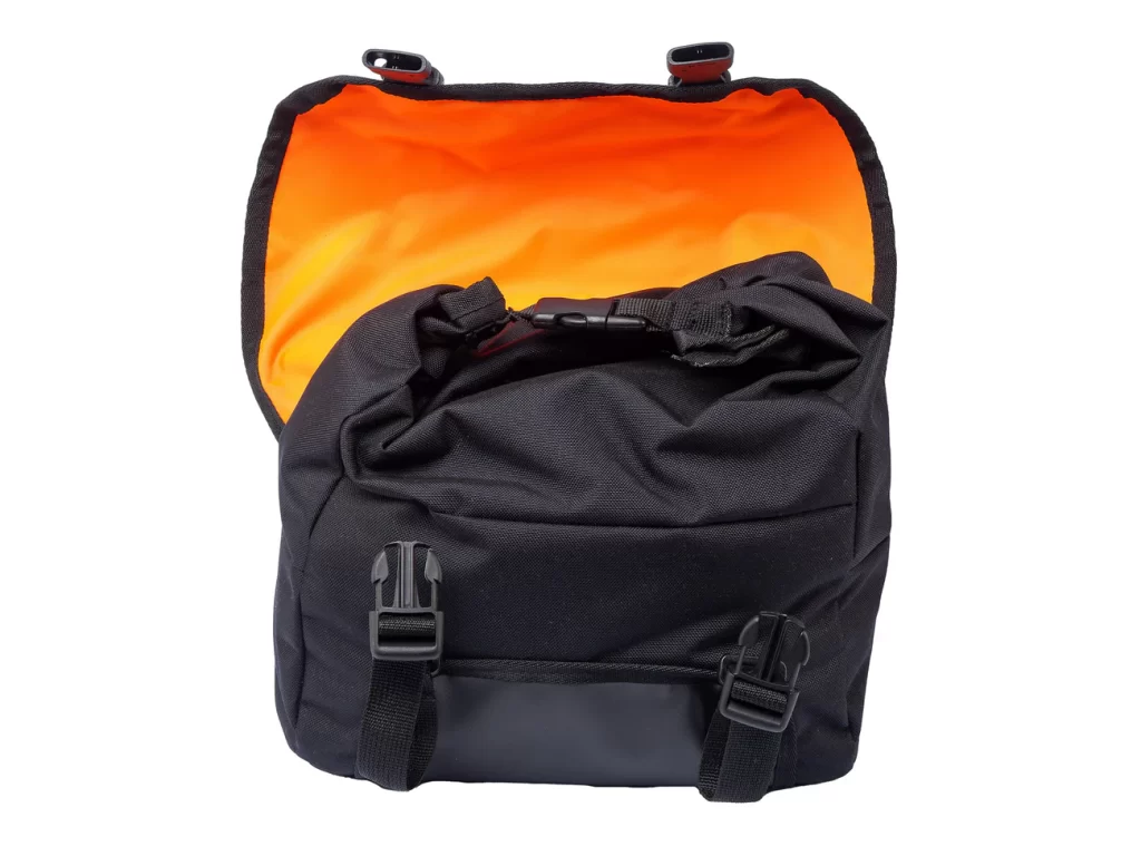 - 使いやすさと安全性 荷物の量に合わせて調節できるロールトップ式の開口部を採用。反射素材のロゴが夜間の視認性を高め、安全なライドをサポートします。