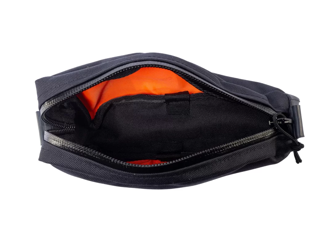 - 使いやすさと安全性 フロントのフラップにはジッパー付きポケットがあり、すぐに取り出したいものを収納するのに便利です。また、反射素材のロゴが夜間の視認性を高め、安全なライドをサポートします。