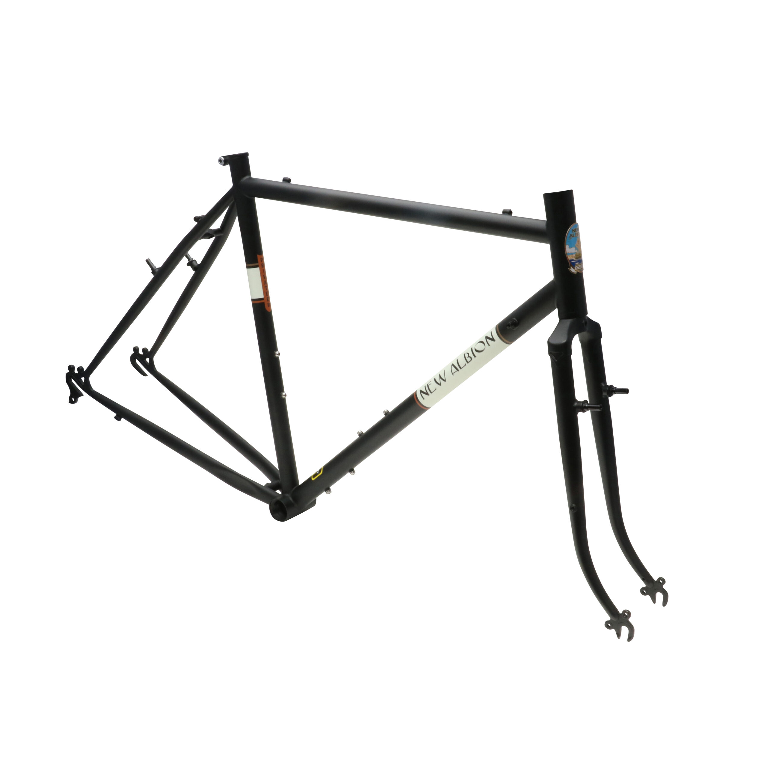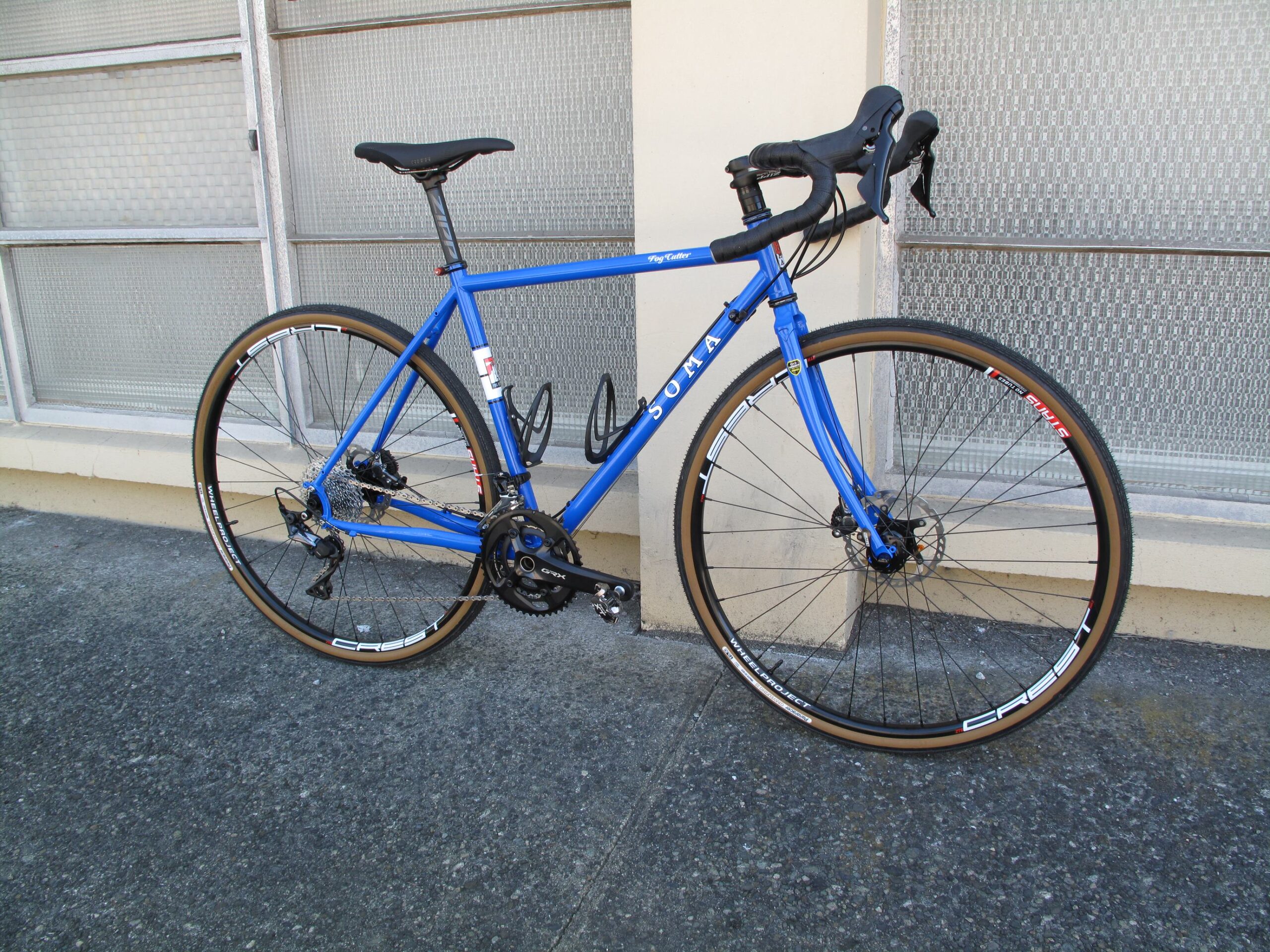 最新のスルーアクスル対応になり700×23-42Cタイヤ・クロモリQRタイプフォーク・フレームにはフラットマウントディスクブレーキを組み合わせどんな道にも対応できるバイク。ラック&フェンダーも装着可能でネオ スポルティフ フレームとも言えるだろう。